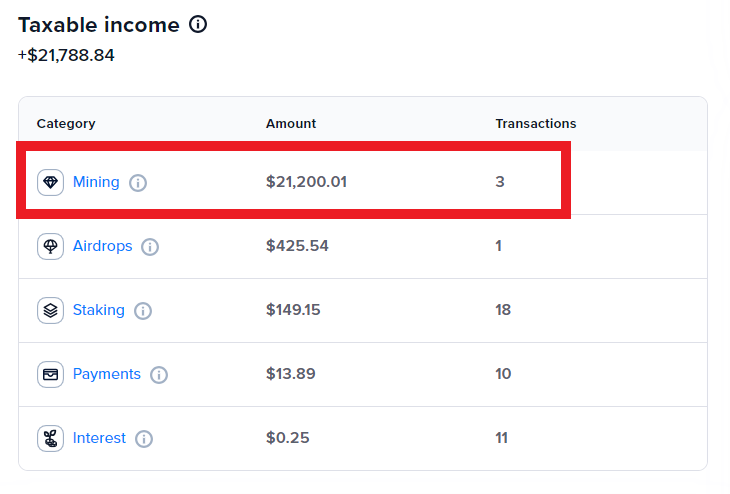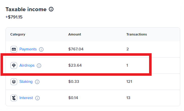 This amount is reflected under the “Airdrops” line on the Taxable Income card in CoinTracker’s Tax Center.