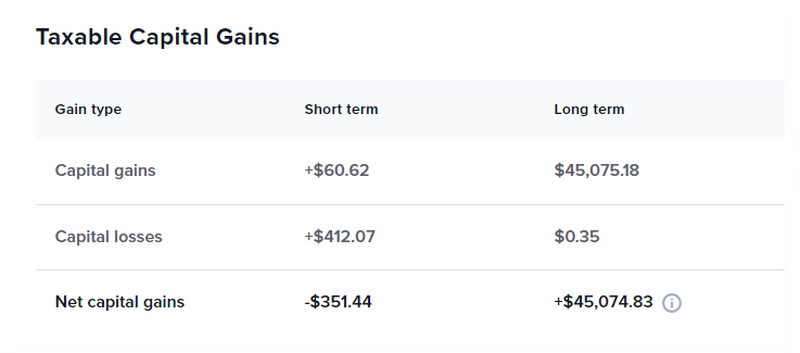 The capital gain amount is reflected on the “Capital gains” card in the CoinTracker Tax Center.