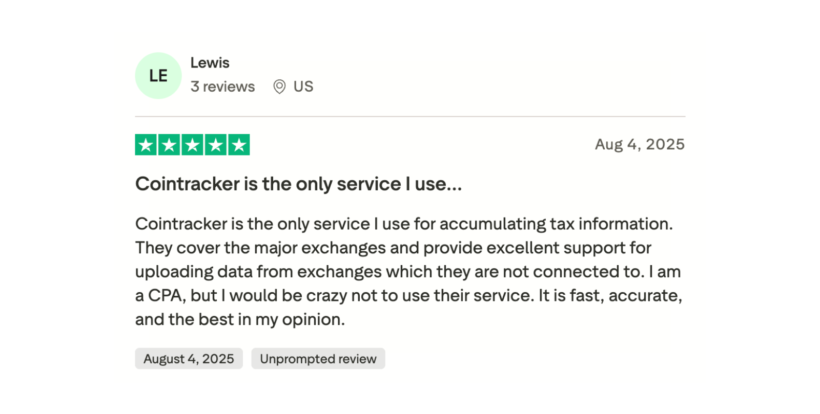 Whether you’re filing crypto taxes for the first time, or reconciling 1099-DAs against years of cost basis across wallets and chains, CoinTracker delivers institutional-grade accuracy with consumer-grade simplicity, giving you clarity, confidence, and control in a year when it matters most.