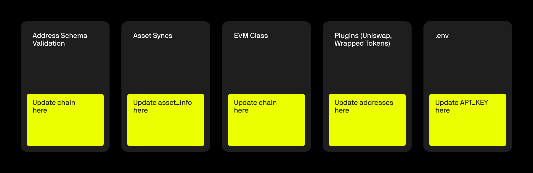 Adding a new chain requires understanding how it works, classifying on-chain activity, and ensuring chain specific assets are properly supported.