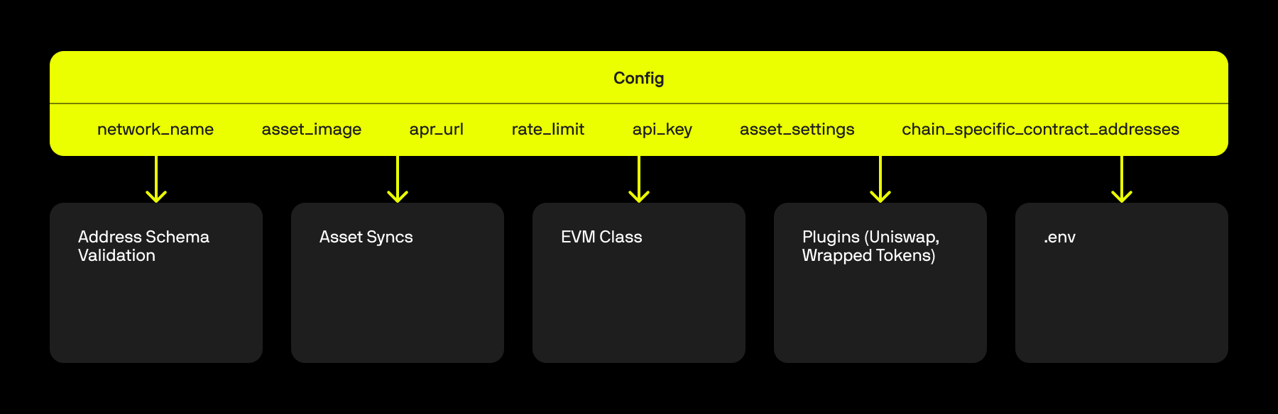 Since the differences among EVM chains are minimal, the scattered logic created unnecessary overhead and complexity. It would make sense to use a centralized, config-driven approach that all components could reference. With this config, only one file would need to be updated and the rest of the components would extract the necessary data automatically.