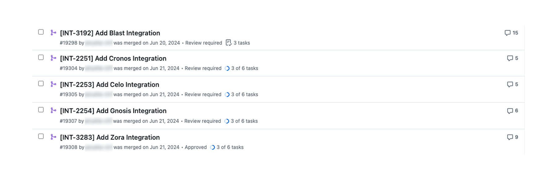 Because even one missed update could break the integration, only a handful of engineers knew the full set of changes required. This knowledge silo made the process slow, error-prone, and hard to scale. For users, the result was long delays in being able to add their requested integration as a new chain request could take weeks or even months before it reached production.