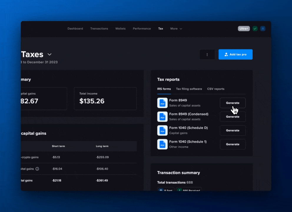 We heard your feedback loud and clear — CoinTracker now ensures that tax forms are automatically downloaded after you hit generate. Forms are also emailed so they’re easily accessible for future reference.
