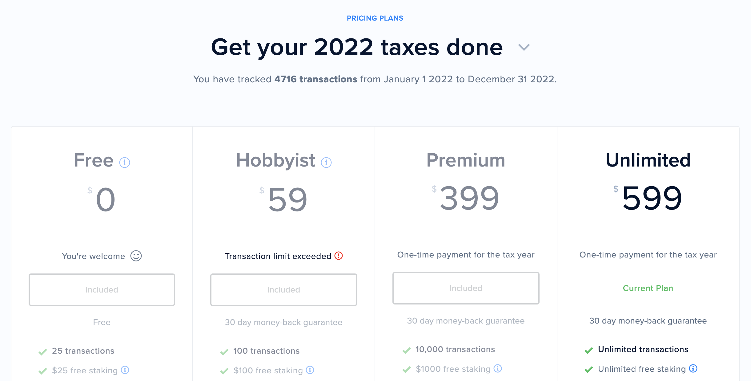 We heard you loud and clear — our tax plan pricing was confusing. We recently updated our pricing with a simple unlimited transactions tax plan at $599. If you filed an extension and still need to get your crypto transactions sorted, find out which plan you need today.