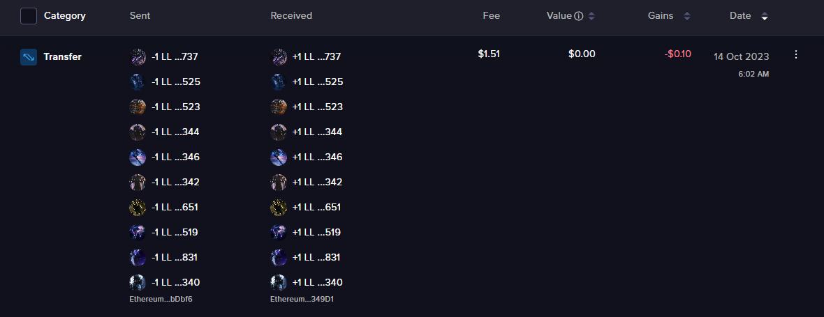 CoinTracker now automatically detects when multiple tokens, including NFTs, are transferred to another wallet in one swoop. We’ll make sure that the cost basis transfers over for accurate tax calculations. Transfer away!