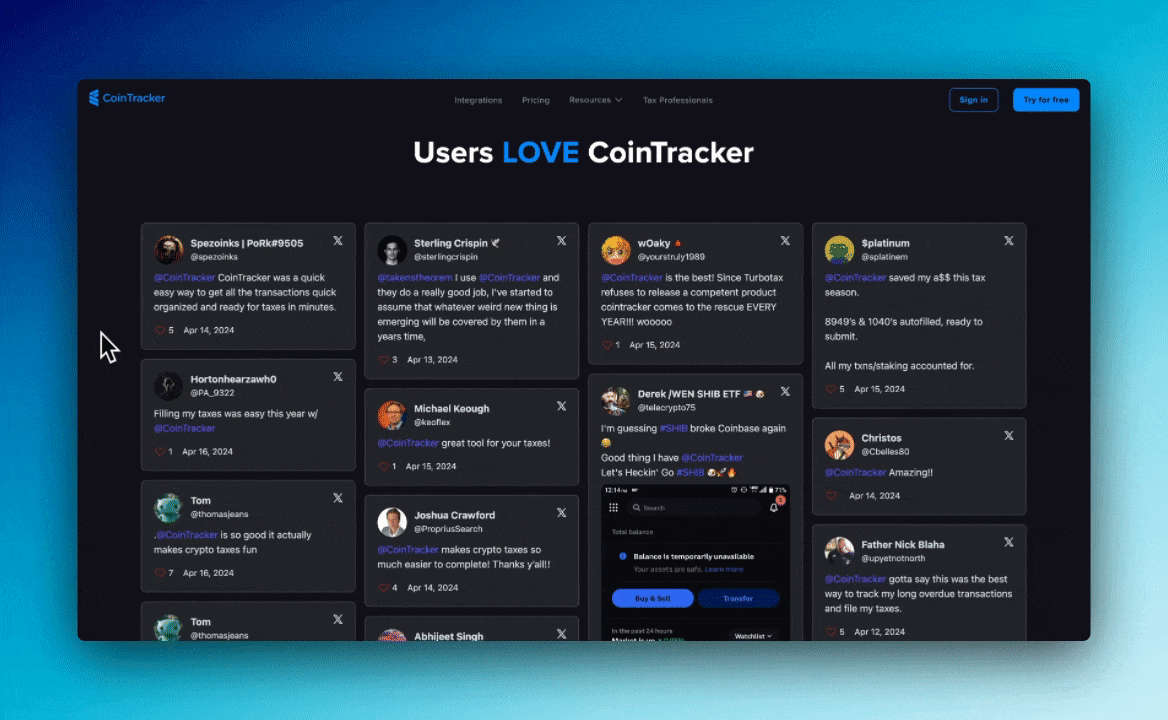 We have loved building awesome products for you, and we’re pumped to showcase your love and excitement for CoinTracker on our homepage.