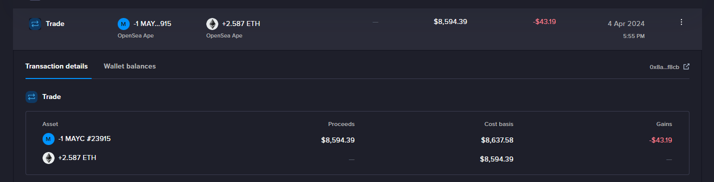 You can use CoinTracker to track the cost basis of NFTs and calculate gains when they are sold.
