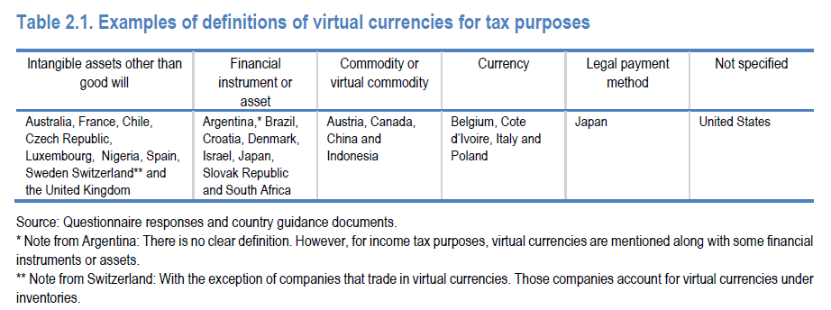 According to the OECD report, regulators find it challenging to come up with a robust tax policy for cryptocurrency due to a lack of centralized control, pseudo-anonymity, valuation difficulties, hybrid characteristics, and rapid evolution of the technology. As a result, different countries treat cryptocurrency related transactions in different ways. There’s no uniformity nor consistency in applying these tax rules leading to low compliance rates and lost tax revenues. On top of that, different jurisdictions define virtual currency in various ways for tax purposes.